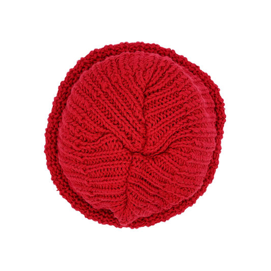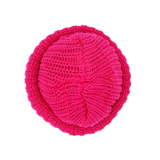 Double Cuff Large Knit Beanie (Magenta Pink)